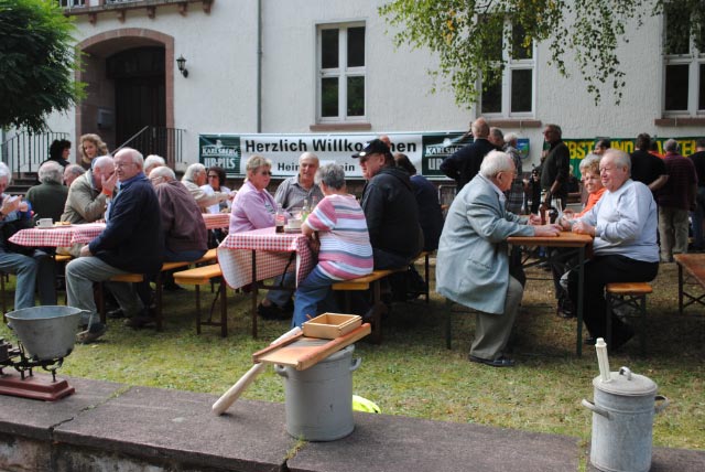 Den "5. Kappestag" feierten Heimat-verein und Obst- und Gartenbauverein Honzrath vor der Steinbrecherstube" bei der ehemaligen Grundschule. Zahlreiche interessierte Besucher nutzten bei schönstem Herbstwetter die Gelegenheit, zum Mittagessen eine kräftige Mahlzeit mit Dürrfleisch oder Kochwurst mit Püree und selbst eingemachtem Sauerkraut zu genießen. Bei Kaffee und Quetschenkuchen konnten sie miterleben, wie der "Kappes" gehobelt und sach- und fachgerecht eingemacht wurde. Viele hatten ihr eigenes "Kappesbüttchen" mitgebracht und ließen sich zu einem geringen Kostenbeitrag ihren Wintervorrat einstampfen.